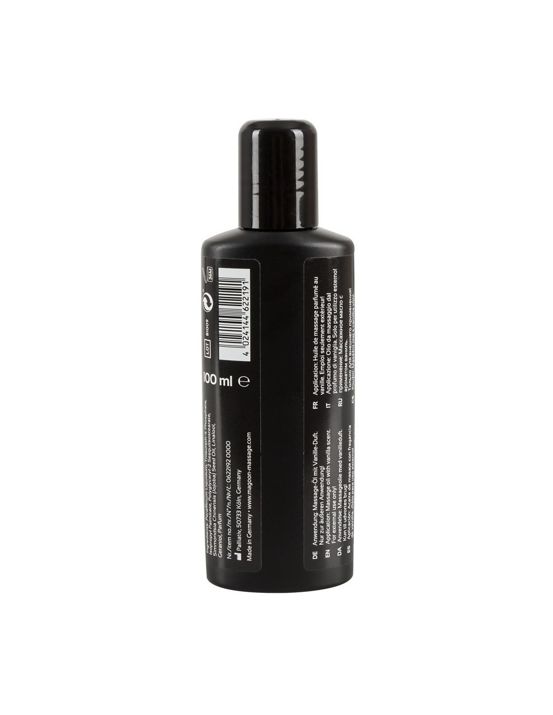 MAGOONPer il massaggio stimolante del partner! Olio da massaggio erotico di alta qualità prodotto in Germania! Gli ingredienti preziosi si prendono cura della pelle morbida e liscia per un lungo piacere di massaggio. Inoltre, il profumo alla vaniglia afrodisiaco e illuminante dell'umore stimola fantasie nascoste (erotiche) .... solubile in acqua, facile da lavare. Flacone da 100 ml.