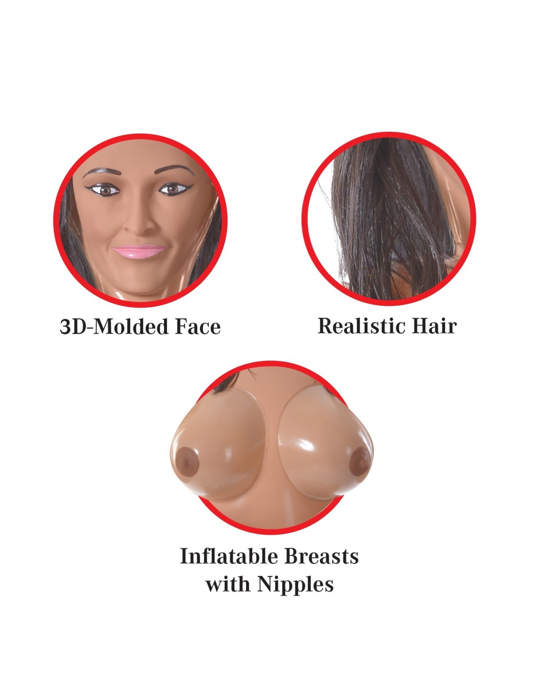 Bambola realizzata in materiale morbido, con viso stampato, seno sodo e due pertugi (vagina ed ano) in cui non indugiare!