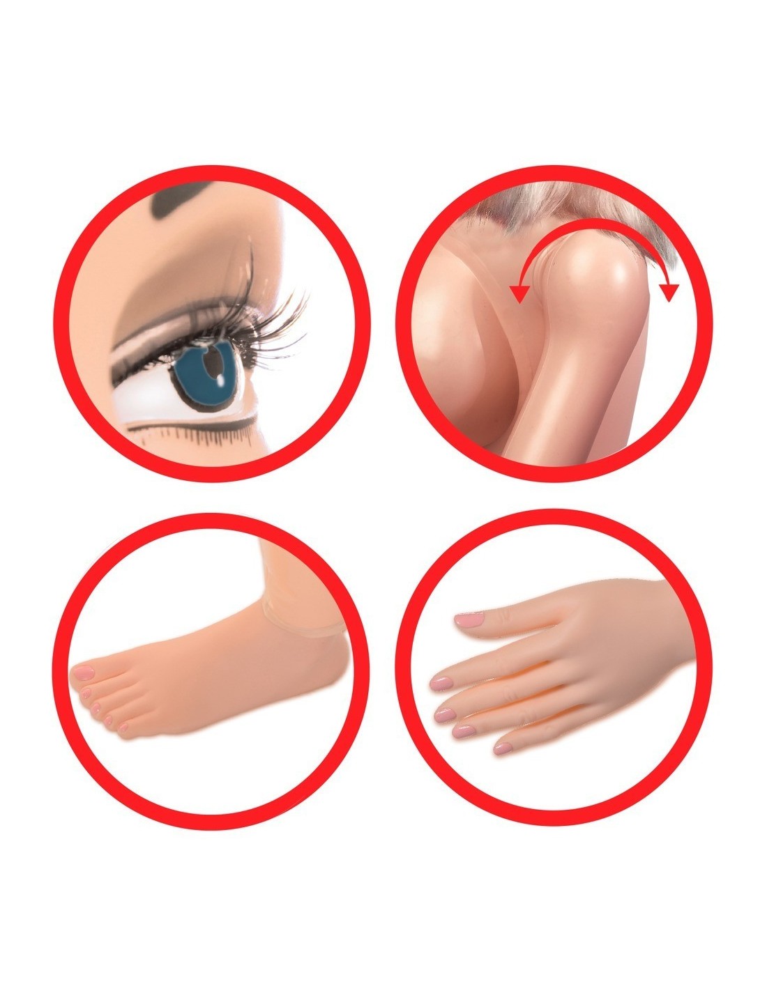Questa bambola del sesso guarda sensualmente il suo amante con il suo seducente viso 3D ei lunghi capelli castani. Anche le sue mani e i suoi piedi sono completamente formati e aspettano di essere stretti e accarezzati, mentre anche i suoi seni sfacciati con i capezzoli duri sono estremamente accattivanti. Entrambi i canali del piacere sono in un masturbatore che può essere rimosso in modo che possa essere pulito facilmente. Il masturbatore ha una consistenza all'interno.