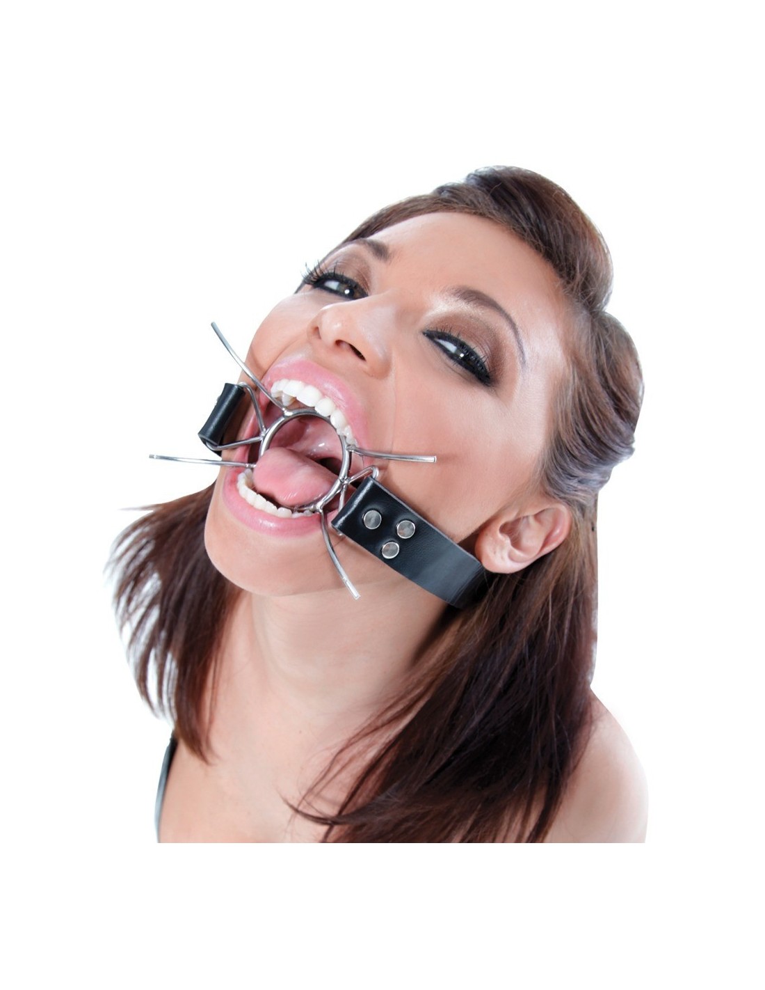 FETISH FANTASYQuando spalancate la vostra bocca e non è abbastanza ampia spider gag è la soluzione. E' realizzata da un anello in acciaio con quattro gambe in metallo curvate attaccate allo stesso che restano ben saldate in bocca grazie alla cinghia di congiunzione con attacco posteriore. Il bavaglio impedisce a chi lo indossa la chiusura della bocca dando la possibilà al compagno di giochi di metterci dentro tutto ciò che desidera dando sfogo alle fantasie più estreme.