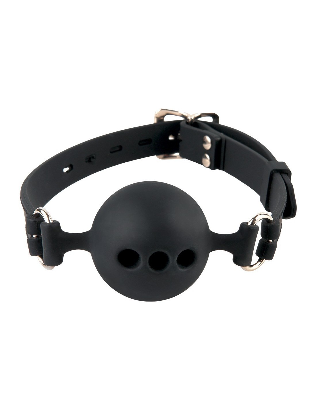 Questo bavaglio è l'oggetto perfetto per i giochi di piacere e sottomissione. La palla rigida è dotata di fori d'aria per un buon apporto d'aria e rende possibili momenti di piacere silenzioso. La fascia per la testa può essere regolata per qualsiasi dimensione della testa con la fibbia di fissaggio. È realizzato quasi interamente in silicone: igienico, inodore e insapore.