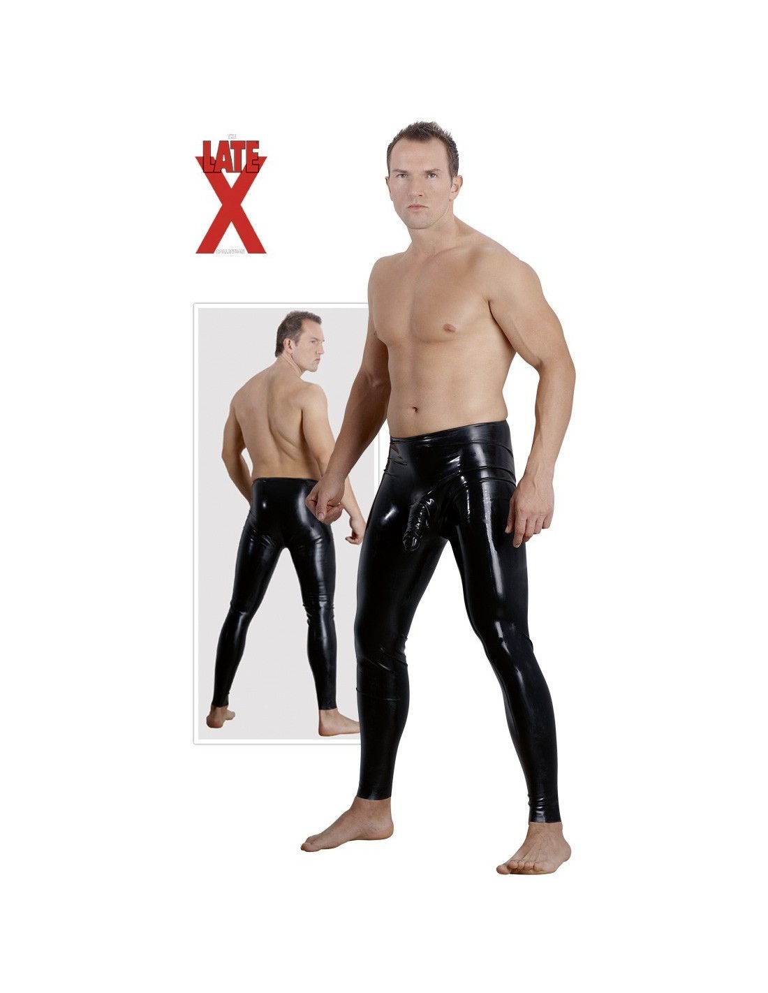 LATE XStretti pantaloni in latex nero con forma anatomica e guaina fallica di bene 13 cm. Prodotto di assoluta qualità in quanto realizzato in latex 100% naturale, grazie alla sua guina incrementerà le sensazioni durante i rapporti, migliora la durata dell' erezione e ritarda l' eiaculazione.