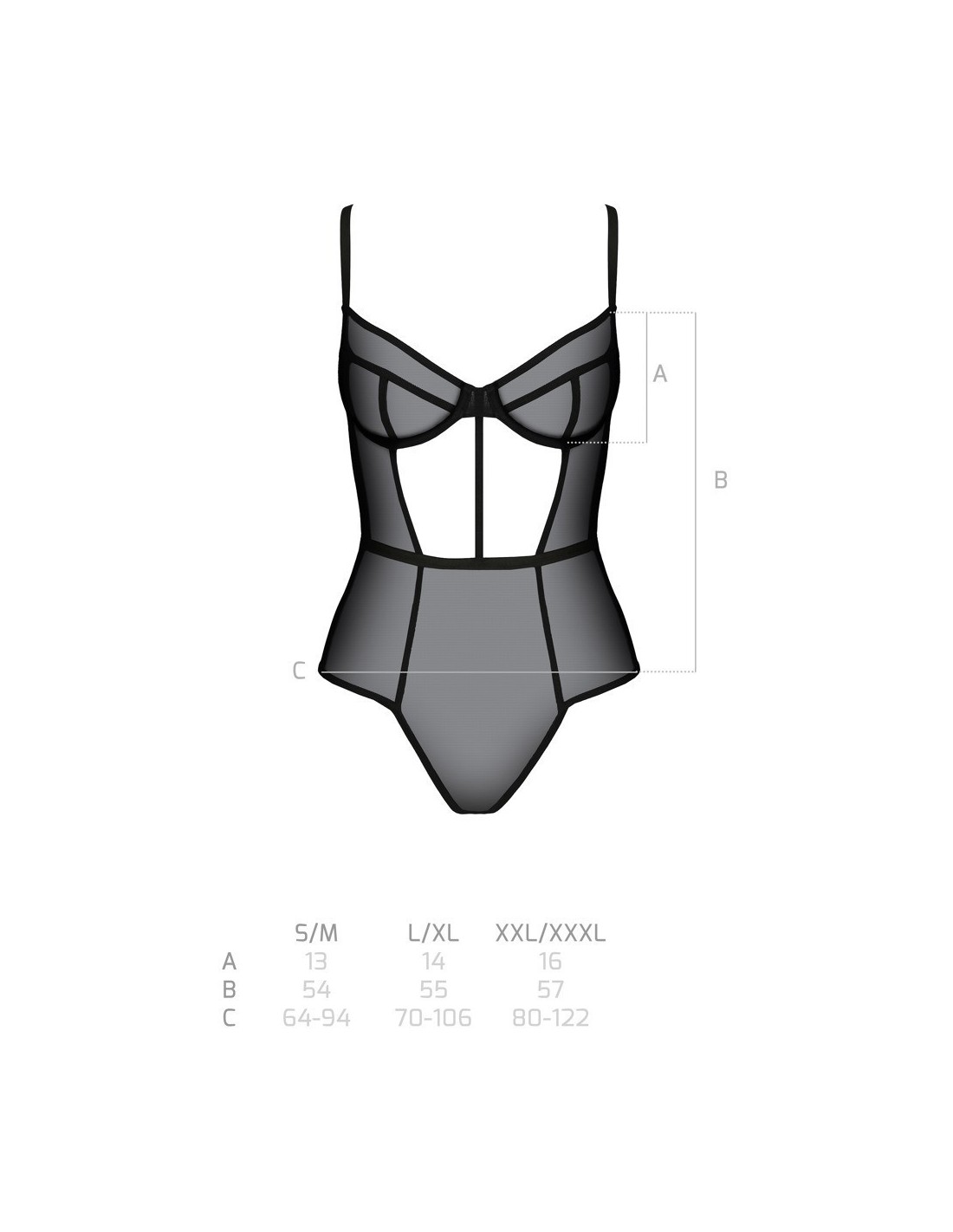 Body Varella morbido e coccoloso della Collezione Eco di Passion realizzato interamente in powernet elastico. Seducente stile Rio con cut-out frontale, tagli alti sulle gambe e chiusura con gancio sul cavallo. Le coppe sono con ferretto e le spalline sono regolabili per una vestibilità perfetta. Piccolo cut-out rotondo sul retro sotto la chiusura a 1 gancio.