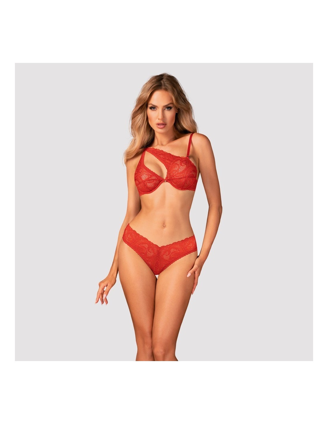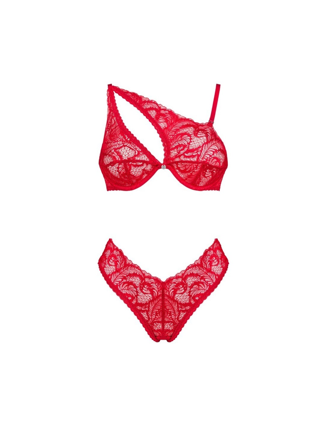 Reggiseno asimmetrico e mutandine estremamente femminili: questo è ciò che delizia il set Atenica. Il classico pizzo rosso sta benissimo sul corpo, enfatizzando i suoi punti di forza. I ferretti del reggiseno garantiranno un bell'aspetto e un perfetto