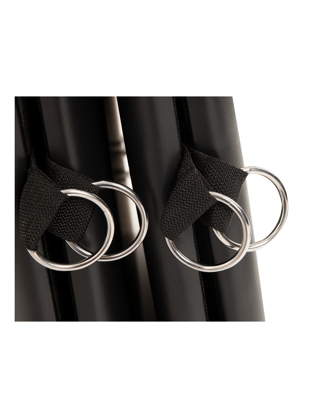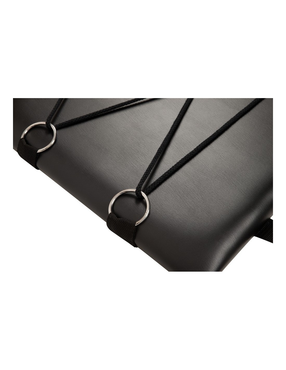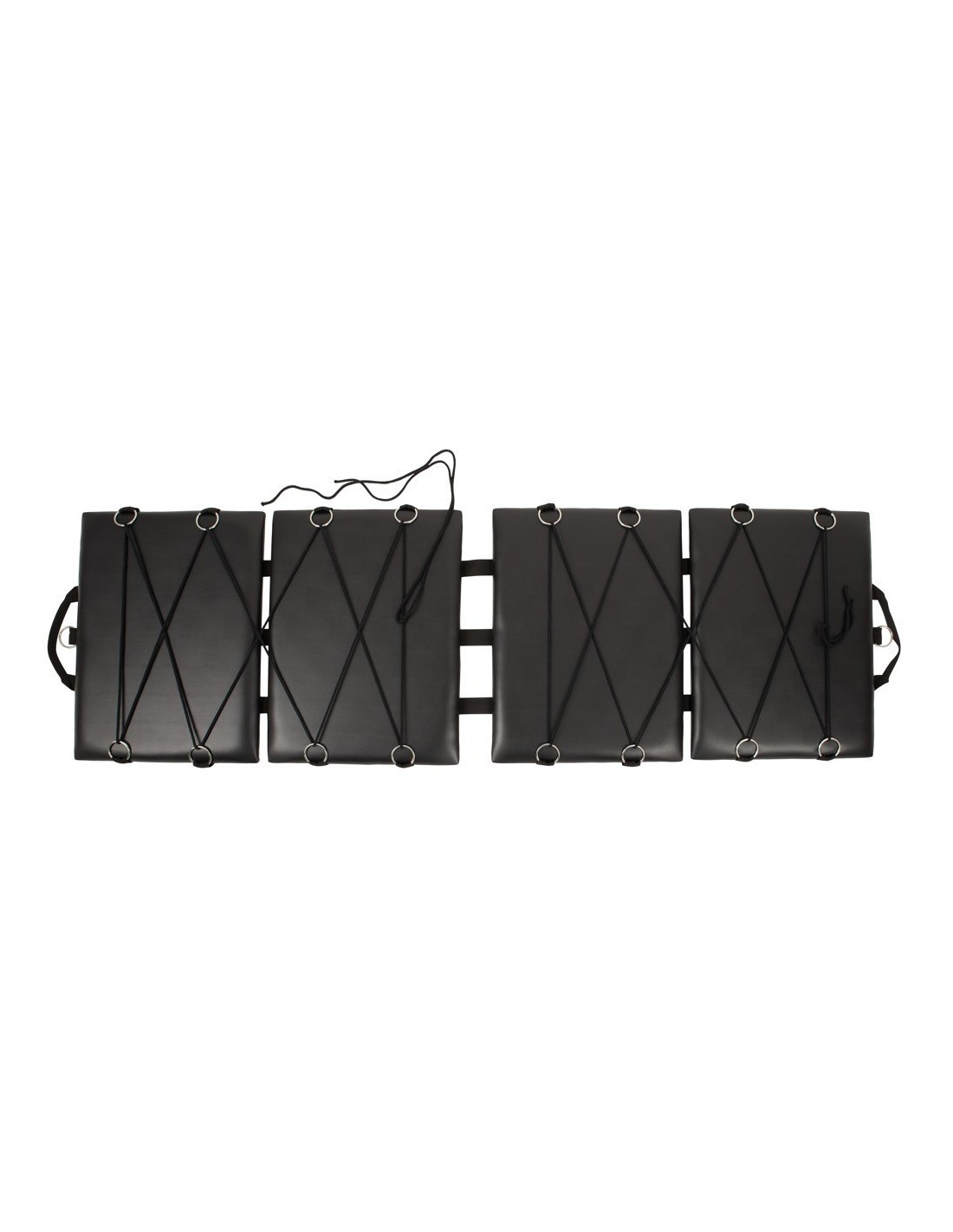 La tavola da bondage a montaggio rapido ha 8 anelli su ogni lato e 1 anello ciascuno all'estremità inclusa della testa e dei piedi (Ø 4,5 ciascuno), in cui le cinghie sono rapidamente agganciate individualmente con i loro moschettoni.
