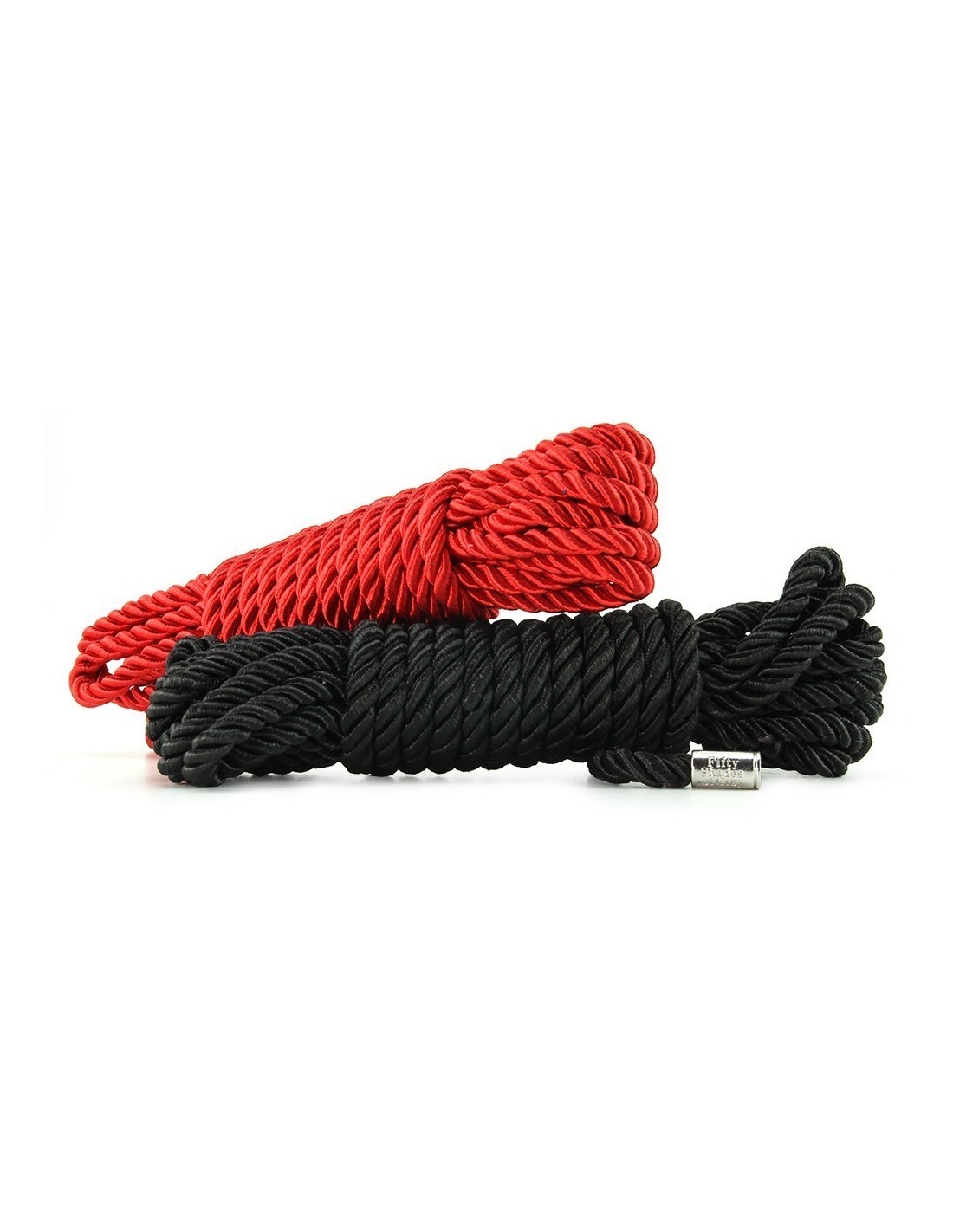 50 SFUMATURE DI GRIGIODestinate agli amanti delle pratiche bondage e per chi vuole provare lo shibari, una pratica che consiste nel creare legature erotiche con corde sul corpo di una persona. Prodotte in nylon triplo, senza elasticità e con terminazioni metalliche per assicurare la massima sicurezza durante l'utilizzo e per garantire, nel contempo, un estremo piacere nell'uso. Ben 10 metri di lunghezza (2 x 5 metri) per esplorare le vette del bondage più spinto.