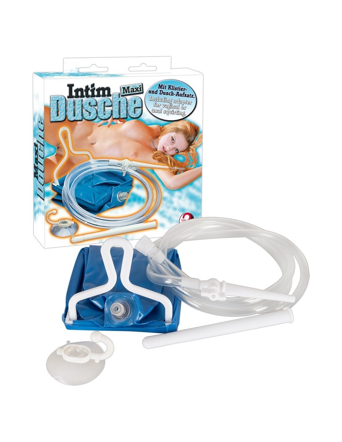 Set completo per frizzanti avventure bagnate! Baste semplicemente appendere la sacca al gancio a ventosa, riempirla con un liquido a scelta e godere dei solleticanti piaceri che l'aggancio anale o quello vaginale sono in grado di regalarvi.