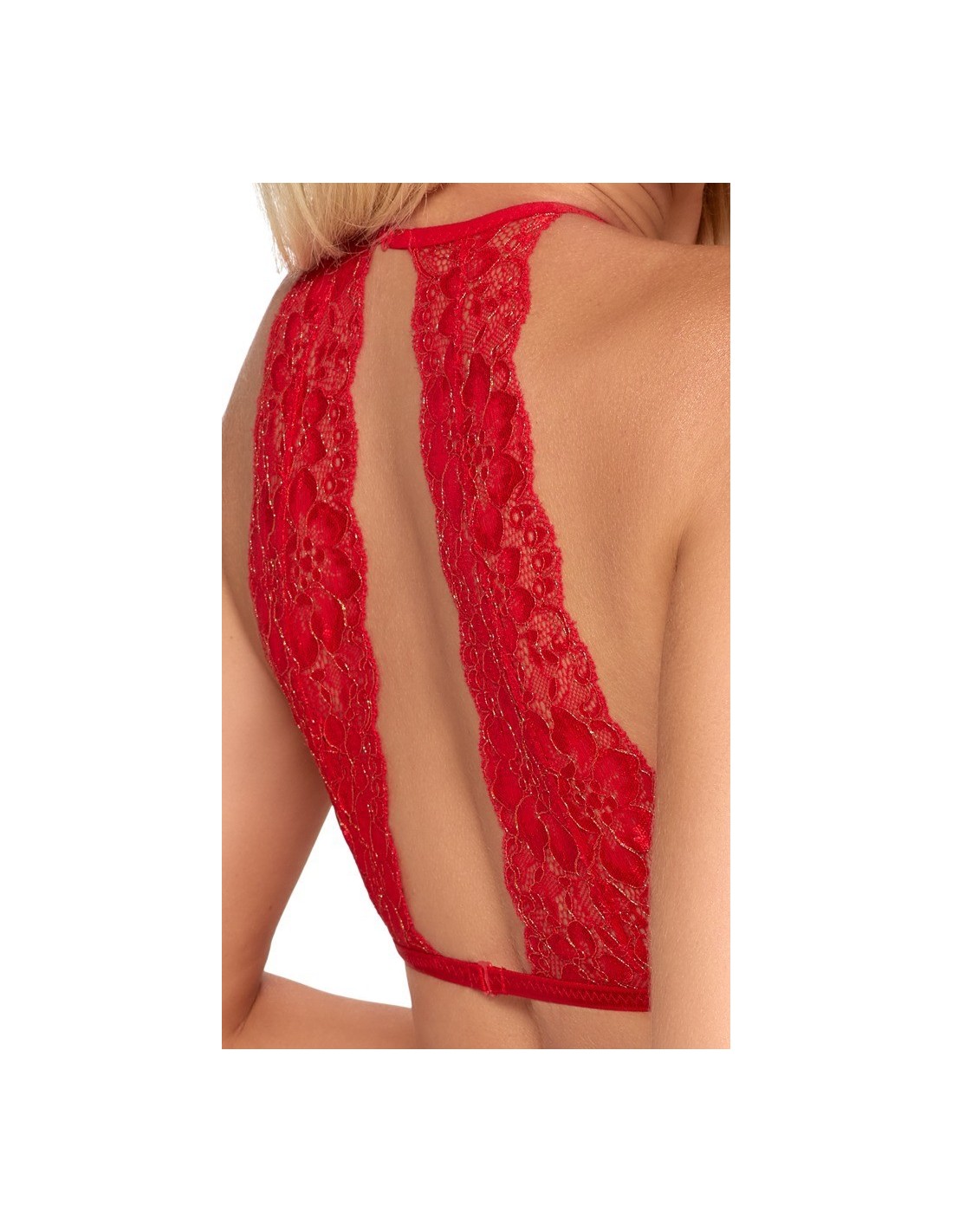 Morbido reggiseno, reggicalze e perizoma di kissable completamente realizzati in pregiato pizzo rosso con dettagli e riflessi dorati. Morbido ed elastico su tutto il corpo per il massimo comfort. Reggiseno