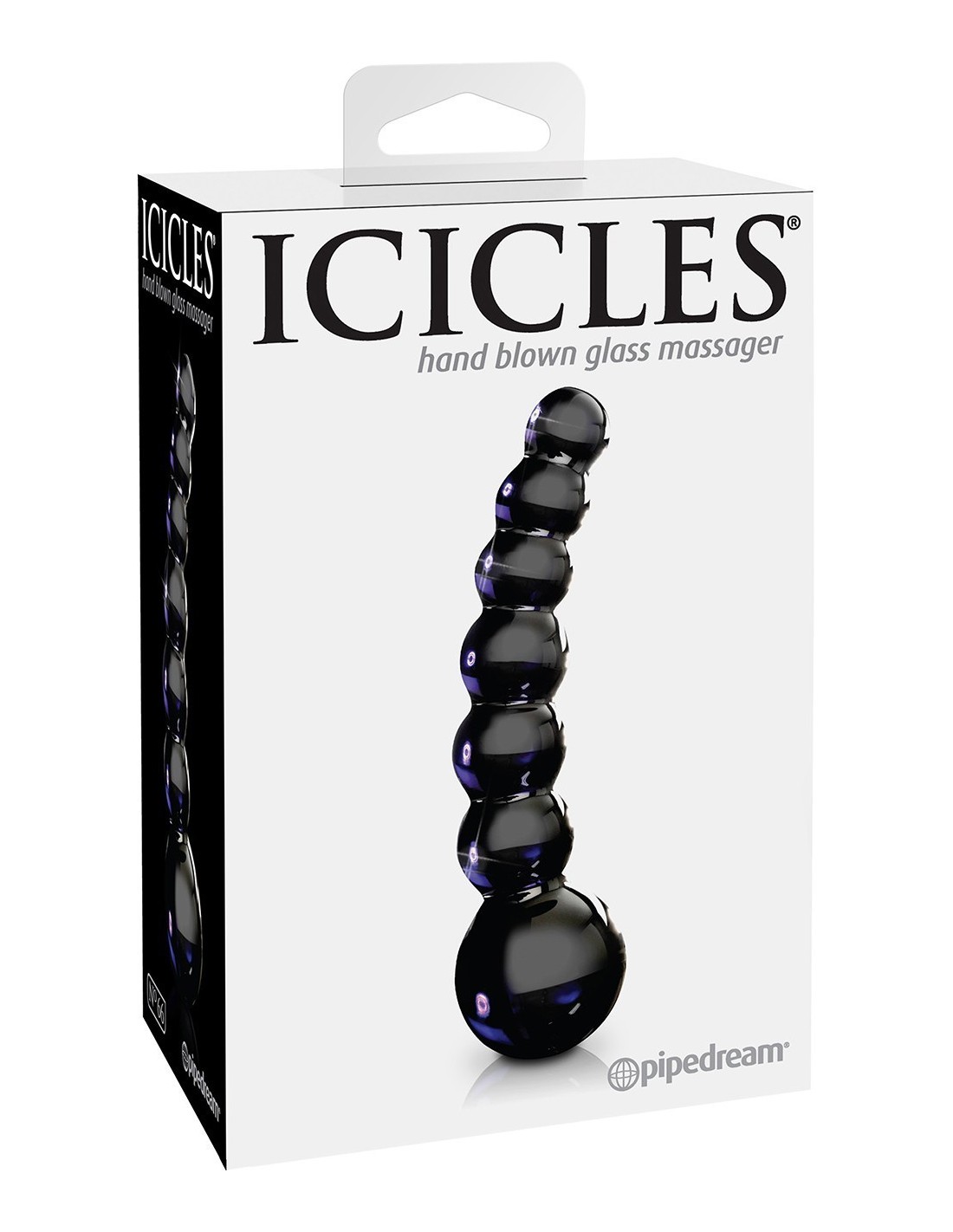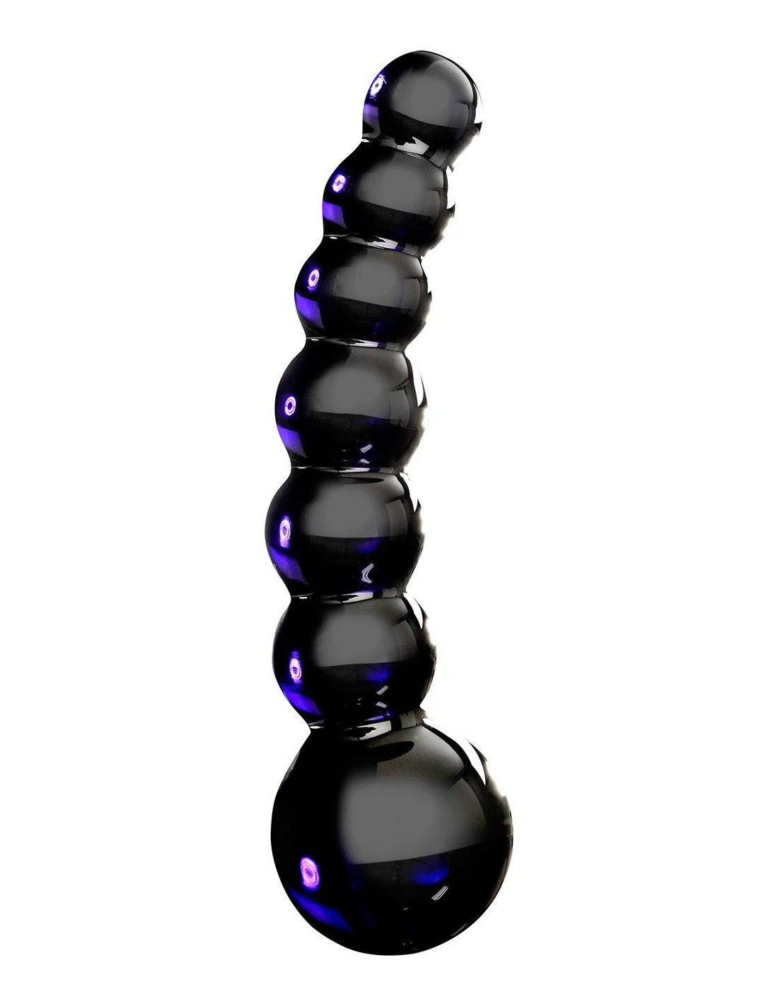 Elegante, raffinato, e realizzato a mano con un'attenzione incredibile per i dettagli, questa linea di lusso di falli in vetro nero vi lascerà senza fiato. Ogni bacchetta di vetro è soffiato a mano Icicle è elegante, unico, e fatto per giocare duro. Questo elegante dildo di vetro dotato di un albero a noduli in cui le dimensioni di ciascuna sfera aumenta gradualmente, consentendo di adattarsi lentamente a dimensioni sempre maggiori. La superficie irregolare è perfetta per la penetrazione sia anale che vaginale e un massaggio erotico del punto g o della prostata grazie alla curvature ottenuta grazie alla soffiatura del vetro. Il vetro ipoallergenico non è poroso e il corpo sicuro, e quando curato adeguatamente, è stato progettato per durare tutta la vita. • Lunghezza inseribile: 12 cm. • Diametro Massimo: 3,5 cm