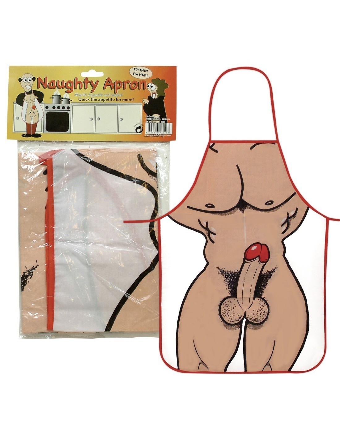 Si dice che l'appetito vien mangiando... Ideale per coniugare i piaceri del palato a quelli della carne... Simpatico grembiule da cucina bianco, con sopra disegnato (in stile fumetto) un corpo maschile dotato di un pene gigante.