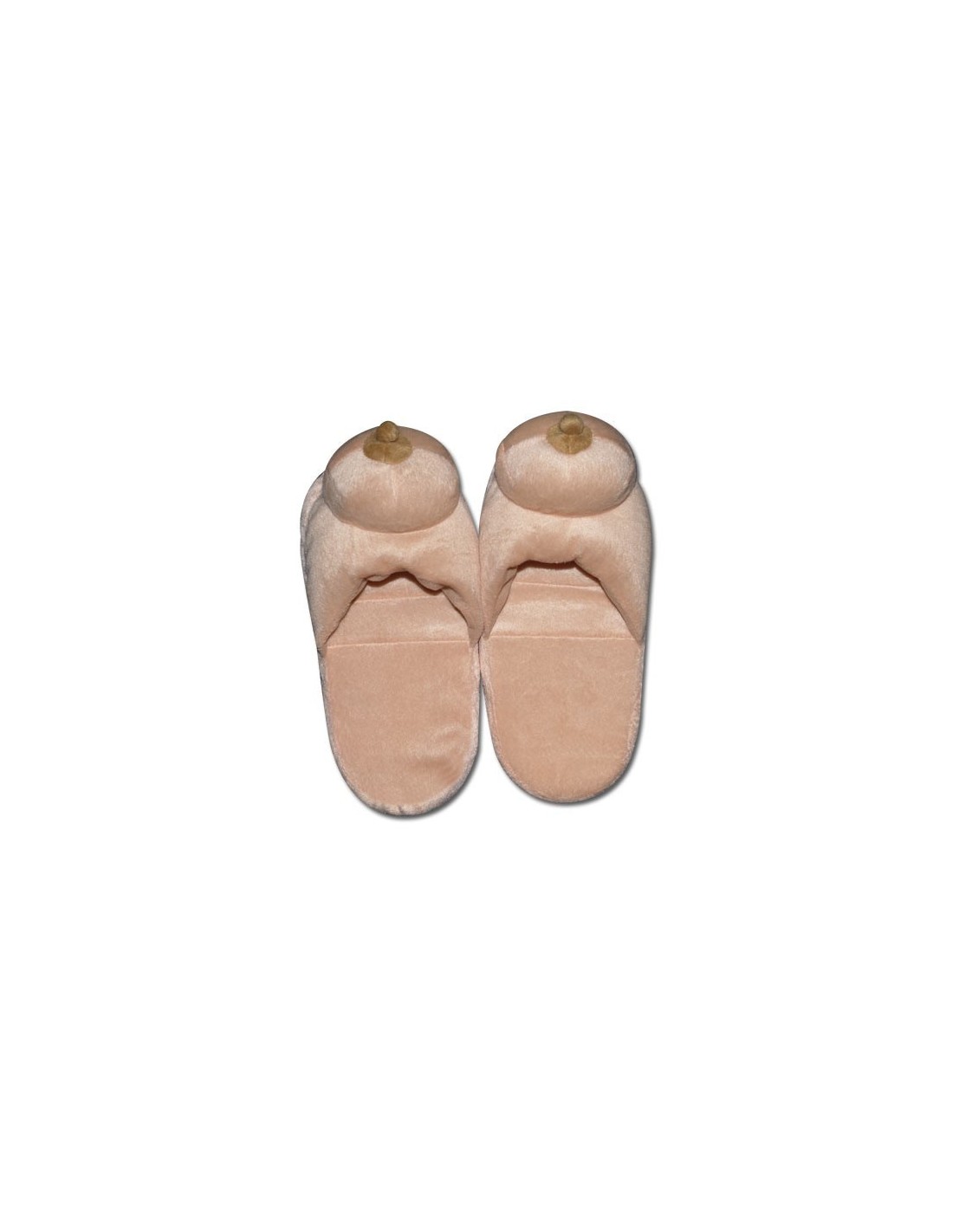 Simpaticissime pantofole da uomo in peluche rosa con seno imbottito sulla parte anteriore...