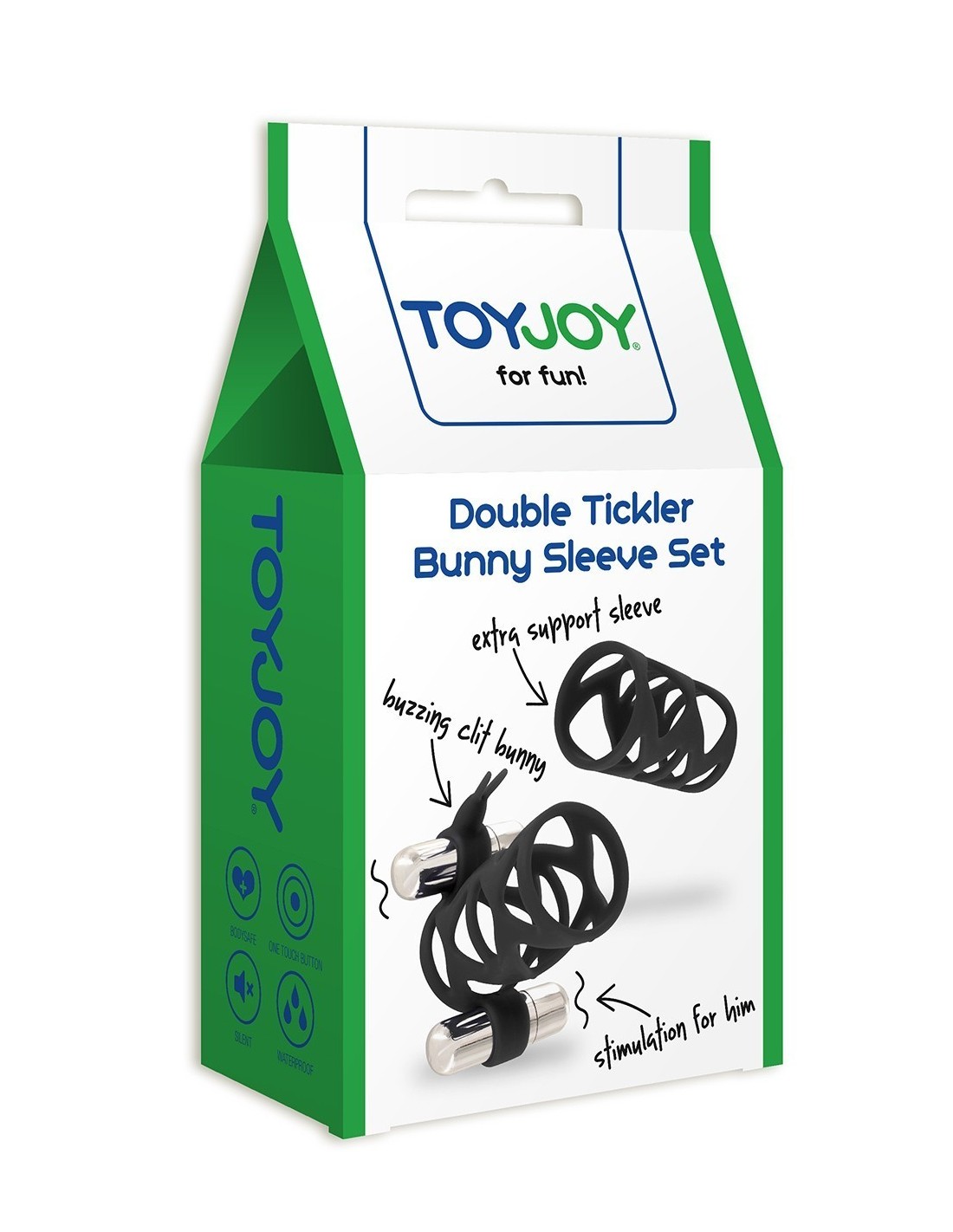 Una coppia di guaine falliche di identico disegno e trama ma una fornita di due motori vibranti per accendere l'atmosfera e stimolare entrambi i partner: clitoride per lei e pene/testicoli per lui.