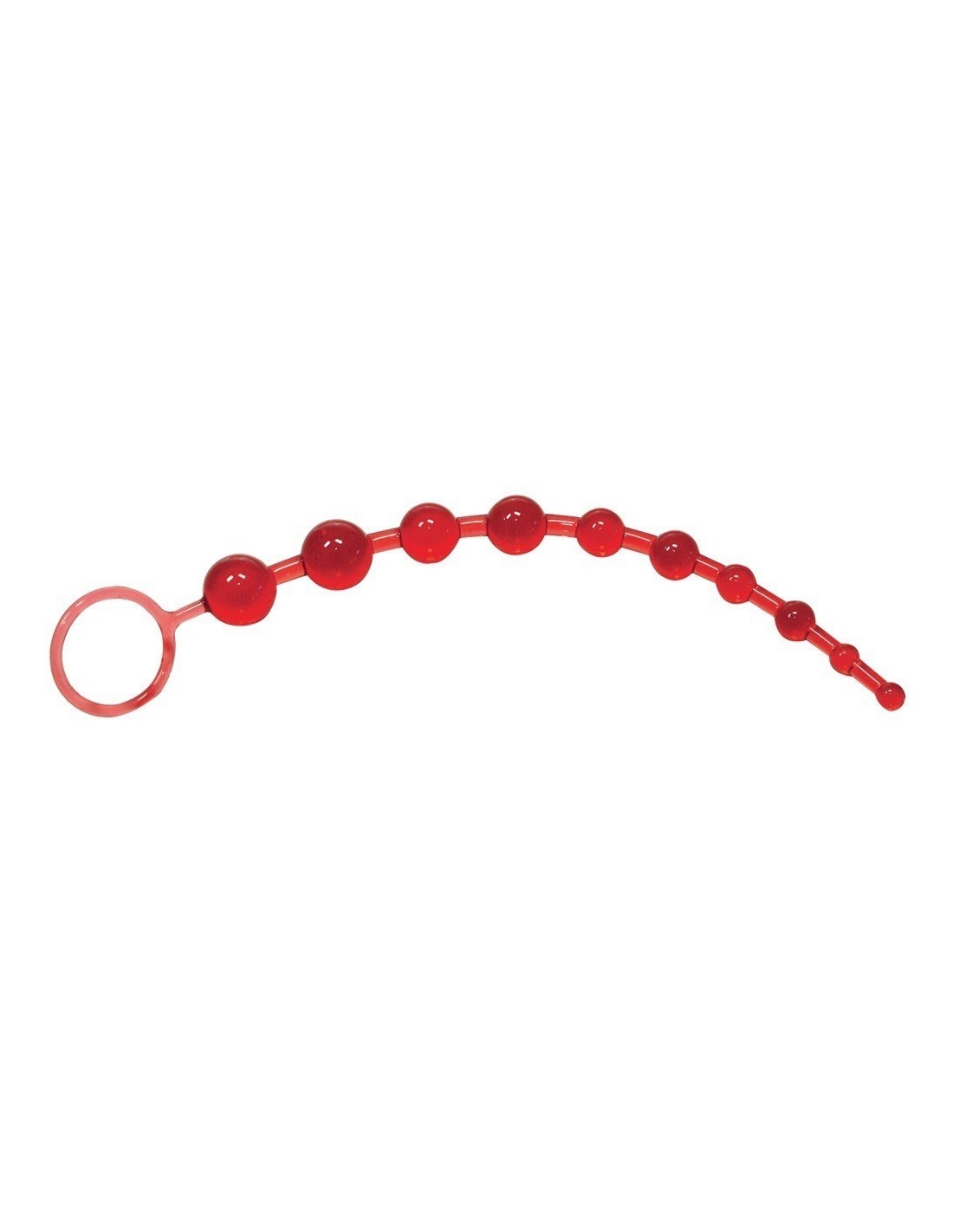 • Corda anale con 10 sfere di dimensione descrescente ed anello di ritrazione, lunga 32 cm, Ø 0.9-2.4 cm, materiale PVC;