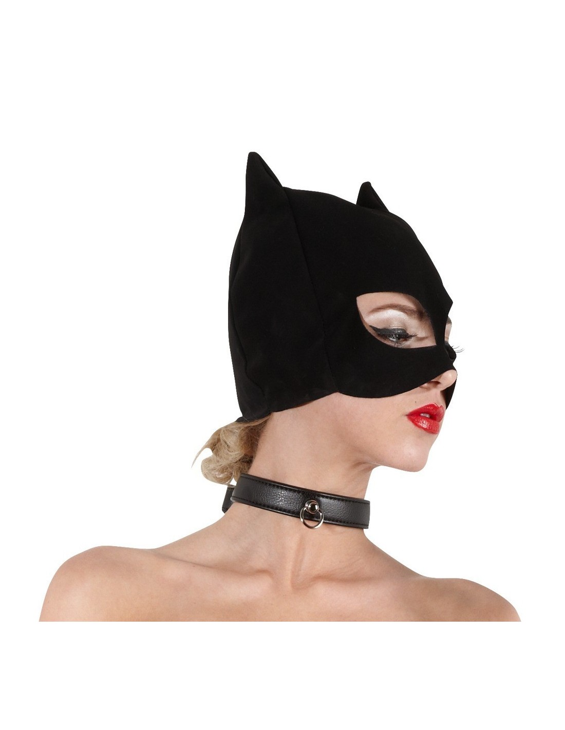 Accessorio per look animale adatto a ragazze selvagge! Maschera nera in finto nabuk opaco vellutato. Con orecchie a punta e aperture per occhi da gatto. La bocca rimane libera.... • Materiale: poliuretano.