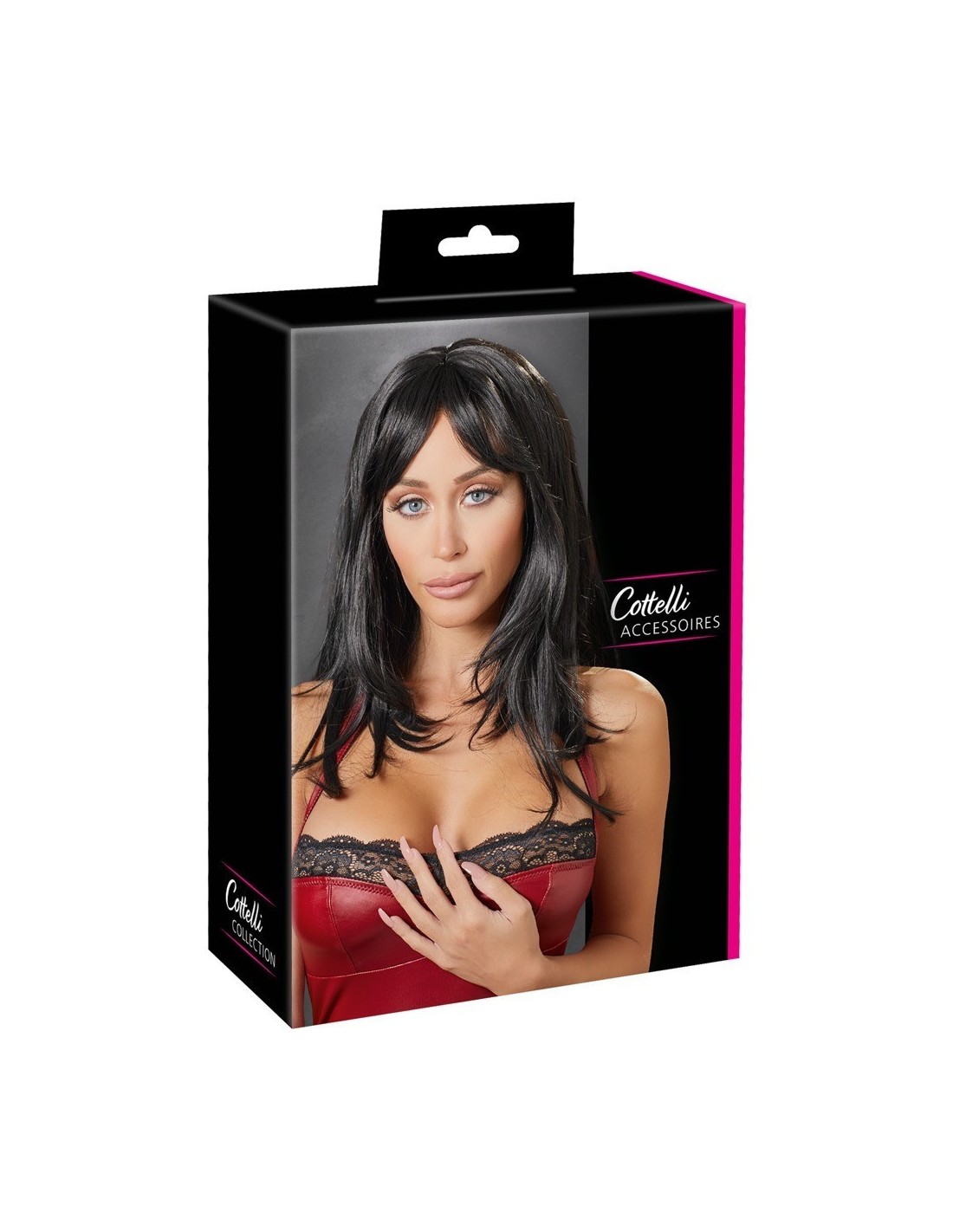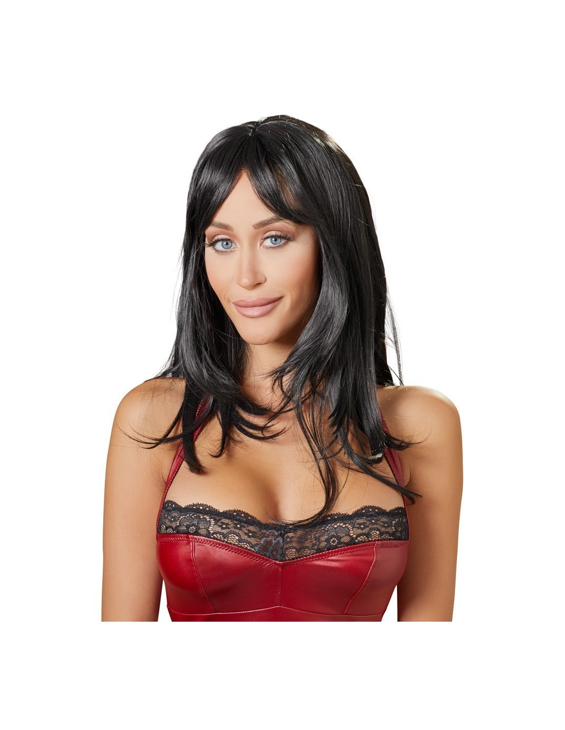 Parrucca con capelli artificiali accuratamente lavorati, facile da lavare con acqua e shampo (possibilmente con uno shampo speciale per parrucche). Nera. Ca. 50 cm di lunghezza. Materiale: 60% polychlorid, 40% toyokalon. Avvertenza: non adatta per arricciacapelli e piastra.
