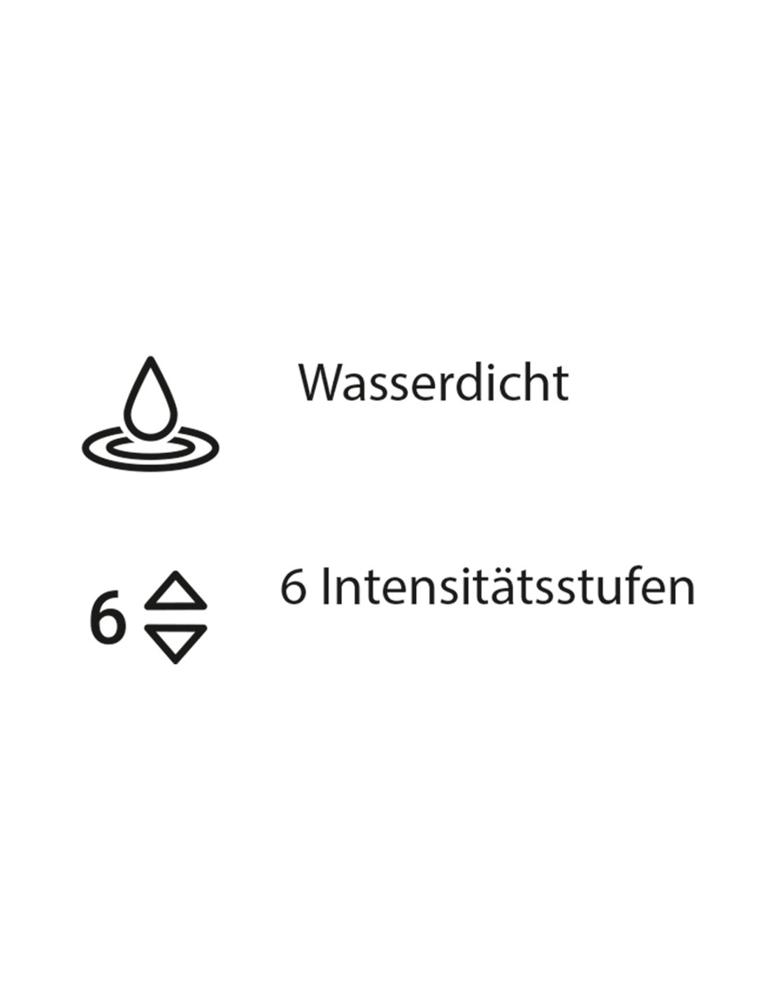 Con spegnimento automatico a risparmio energetico: se l'intensità non viene modificata per molto tempo, lo Starlet 3 si spegne automaticamente dopo 5-10 minuti (a seconda del livello della batteria). Questo può anche essere facilmente aggirato premendo uno dei livelli di intensità, per esempio.