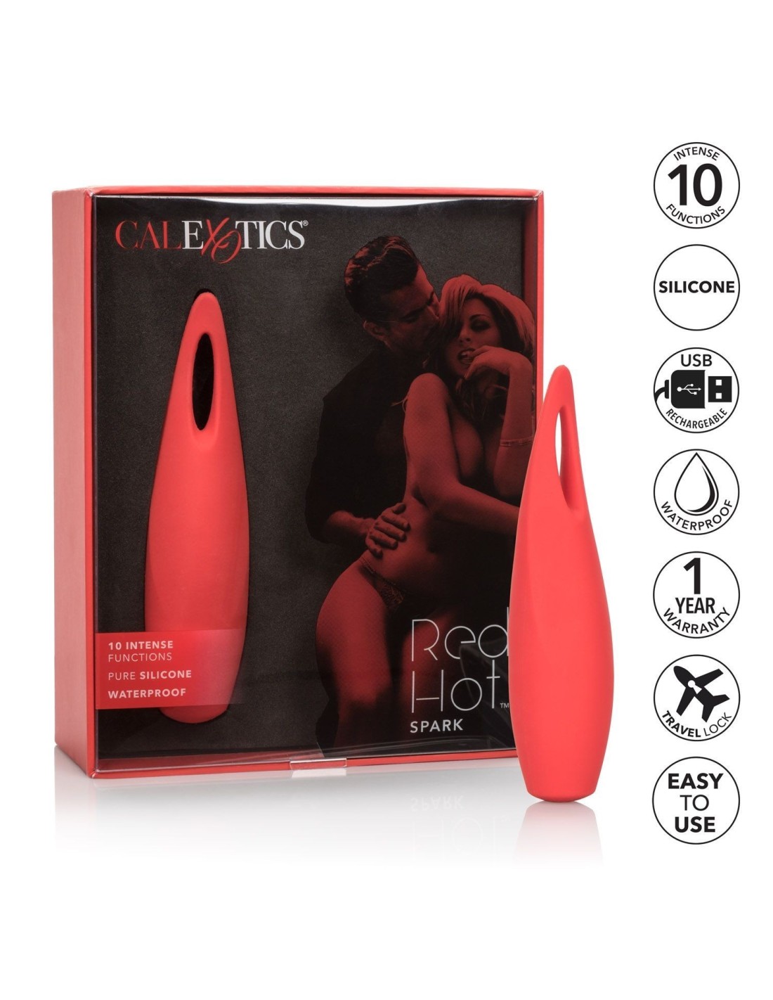 CalExotics Red Hot Spark racchiude intense vibrazioni multifunzione in un pacchetto unicamente sexy. Sentite il calore salire mentre la punta sottile e tremolante punta i vostri punti preferiti e le 10 intense funzioni di vibrazione, pulsazione ed escalation vi infiammano di piacere. Questo giocattolo peccaminosamente delizioso ha un corpo compatto, impermeabile e in silicone setoso, così potrete abbracciare il piacere irradiato ovunque vi portino le vostre fantasie. Condividete il piacere con il vostro partner sotto la doccia o concedetevi un bagno con vibrazioni potenti e impermeabili. Stuzzicatevi con 3 ore di piacere vibrante prima di dover ricaricare questo delizioso vibratore da viaggio. Per ricaricarlo, è sufficiente collegare il vibratore al cavo USB in dotazione e attendere 2,5 ore per una ricarica completa. Che siate timidi principianti o esperti esotici, non vedete l'ora di accendere le fiamme del piacere puro aggiungendo questo massaggiatore personale alla vostra scatola di giocattoli segreti. ACCENDI IL CALORE: Il nostro Red Hot waterproof Spark è sicuro di accendere un fuoco passionale in voi con una punta sottile dalla forma malvagia e 10 potenti impostazioni di vibrazione. Le dimensioni compatte e la batteria ricaricabile rendono il tempo peccaminosamente sexy, anche in viaggio UNICA PUNTA VIBRANTE E DIMENSIONI COMPATTE: La punta sottile, la forma sensualmente sagomata e il corpo al 100% dell'area di gioco sono superbi per accarezzare i vostri punti di piacere preferiti.