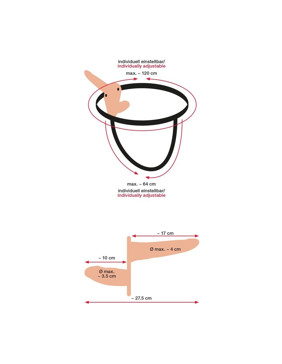 Per eccitanti giochi di ruolo o rapporti saffici. Coppia di vibratori (non separabili) color carne, a forma di pene, realizzati in lattice. Dotati di cinturino nero rimovibile in materiale simil-pelle.