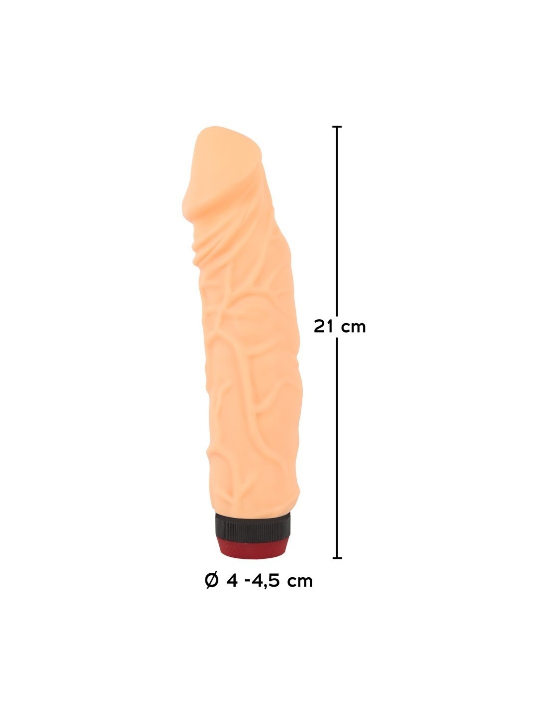 Vibratore realistico dalla venatura marcata e potente glande stimolante realizzato in materiale scorrevole. • Vibrazione regolabile; • Lunghezza: 21 cm; • Diametro: 4-4,5 cm; • Materiale: PVC; • Funziona con 2 batterie AA (non incluse).